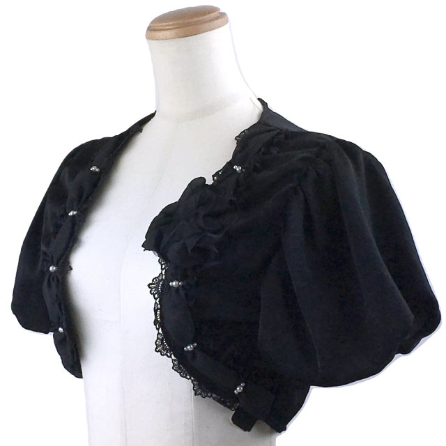 ボレロ 結婚式 シフォンフリルが素敵なベロアボレロ 黒