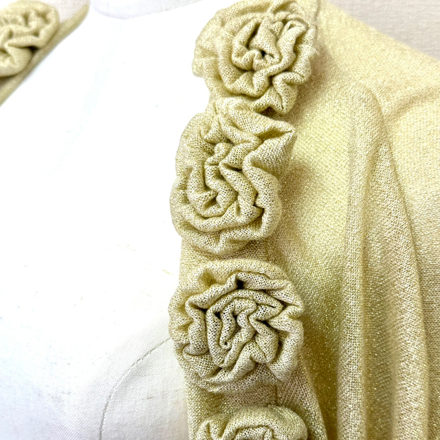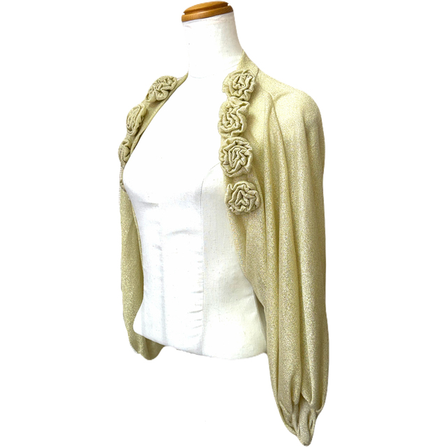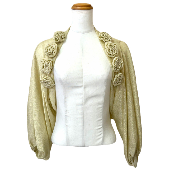 バラモチーフが可愛いラメ混ストレッチ5分袖ボレロ ベージュ">