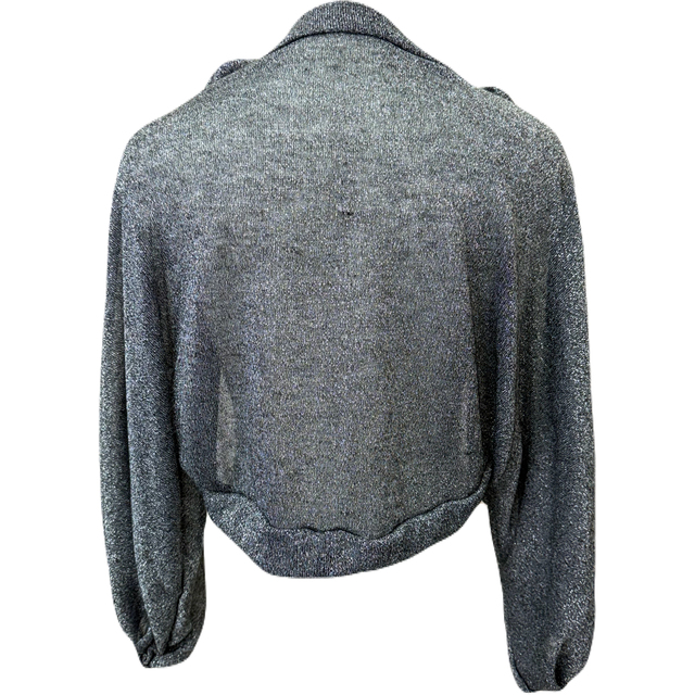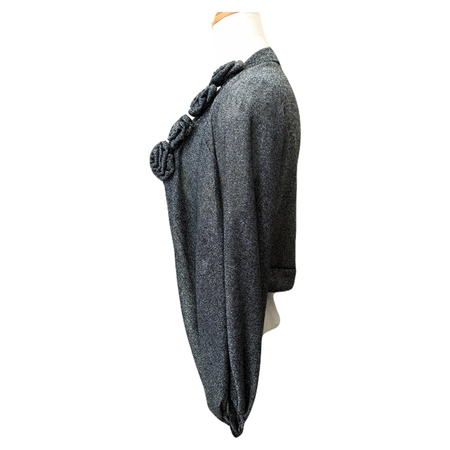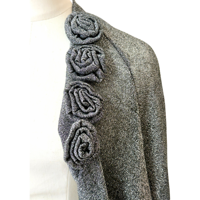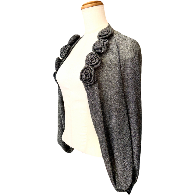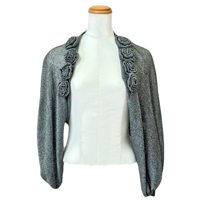 ボレロ バラモチーフが可愛いラメ混ストレッチ5分袖ボレロ 黒